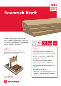 Panel semirrígido de lana de roca, revestido en una de sus caras con papel kraft que actúa como barrera de vapor.