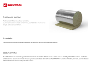 Prolit Lamella Mat on kivivillasta valmistettu alumiinilaminaattipinnoitettu lamellimatto, jota käytetään ilmakanavien lämpö- ja kondenssieristyksiin.