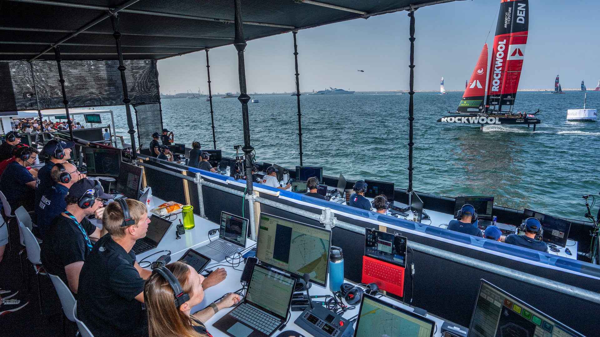 The coaches booth during the Dubai Sail Grand Prix in Season 4.